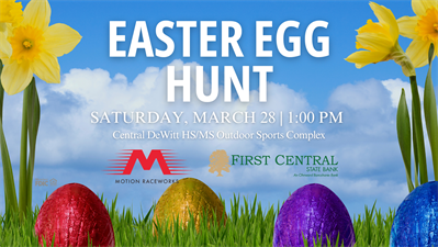 It's time for the annual Community Easter Egg hunt in DeWitt, sponsored by Motion Raceworks and First Central State Bank.
